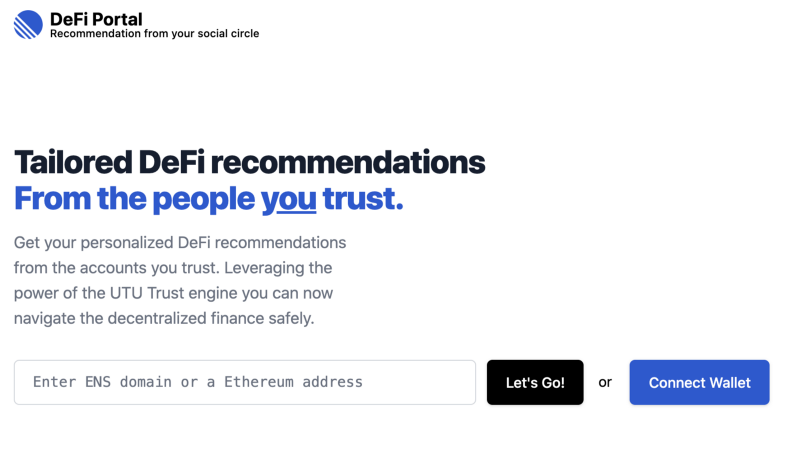The DeFi Portal uses UTU’s trust infrastructure to show how trustworthy DeFi platforms are.