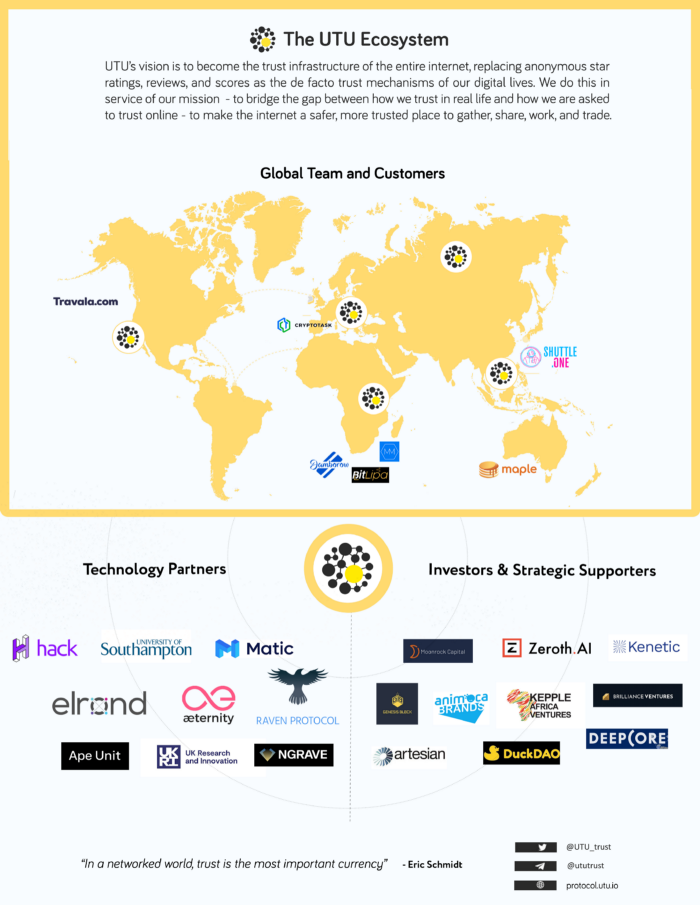 - We partnered with prominent blockchain protocols such as Elrond and Matic to extend UTU’s trust engine to their chains.