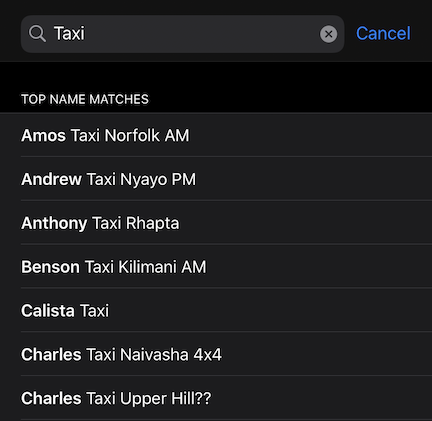 And while that may have been true enough in San Francisco, London, and New York where the early apps were built, it was most certainly not true in Kenya. Everyone’s phonebook looked something like this: